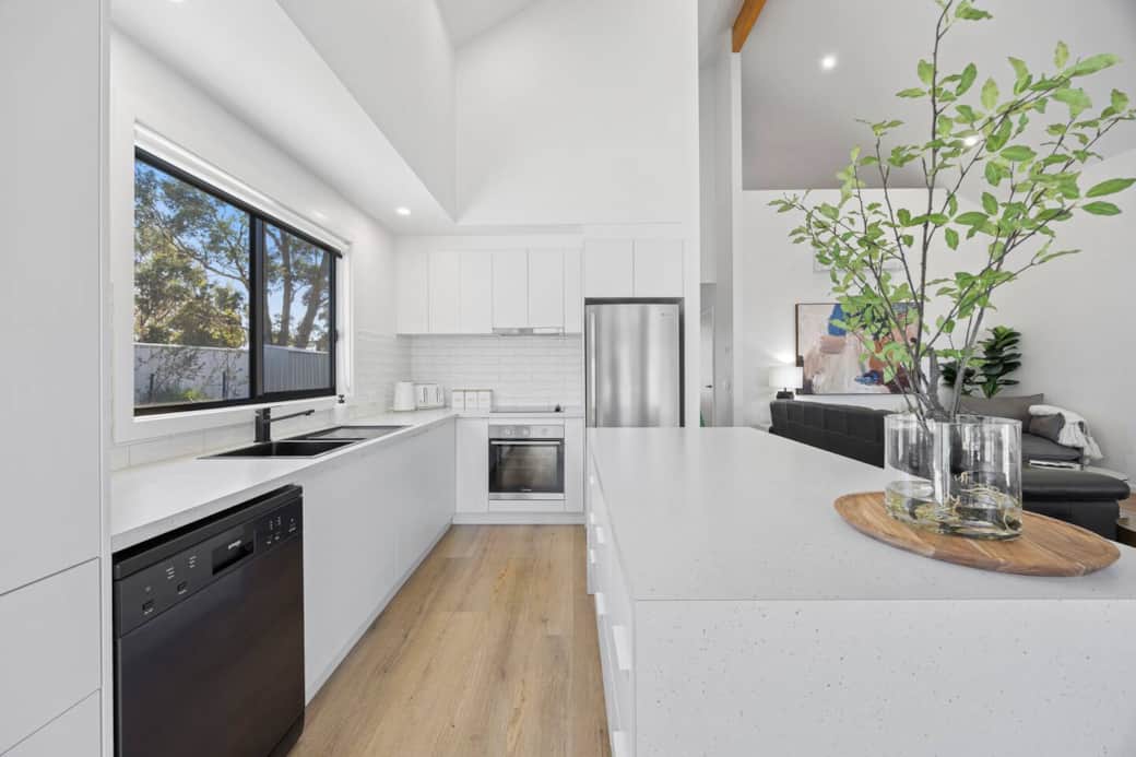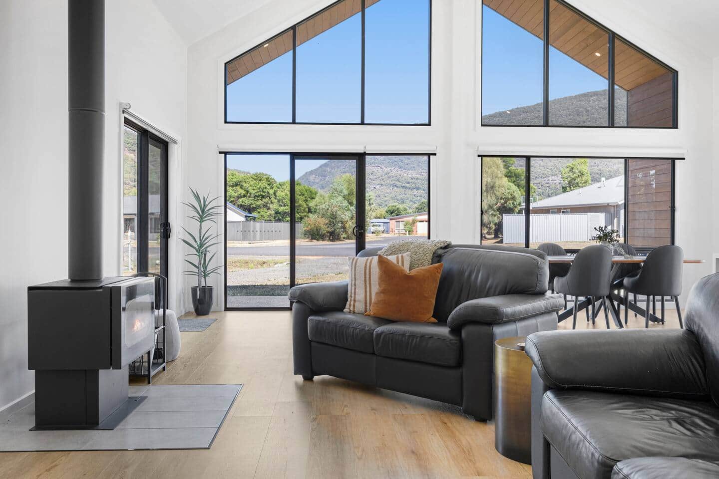 Skyframe is a light-filled two bedroom retreat designed for comfort and relaxation. Large windows frame the beautiful sky views, giving the home its name and creating a calm, airy feel throughout. With two bedrooms, two bathrooms, open-plan living, a full kitchen and private outdoor space, it’s an ideal base for two couples travelling together or friends looking to unwind in a spacious and peaceful setting.